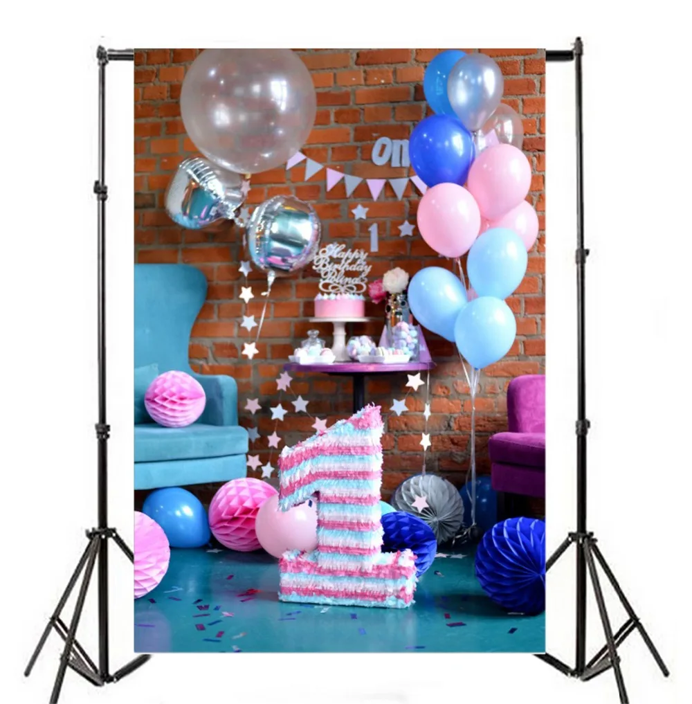 Laeacco Cute Blue Balloons 1 Year Old Birthday Baby Indoor Photography Backdrops Vinyl Custom Photo Backgrounds For Photo Studio