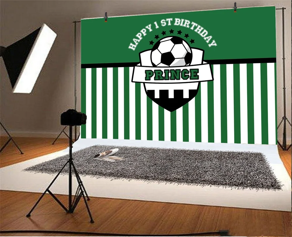 Laeacco Stripes Cartoon Soccer Game Baby Birthday Photography Backgrounds Customized Photographic Backdrops For Photo Studio
