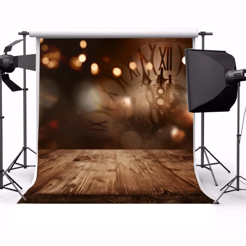 Laeacco Board Clock Light Bokeh Backgrounds Thin Vinyl Digital Customized Photographic Backdrops Props For Photo Studio