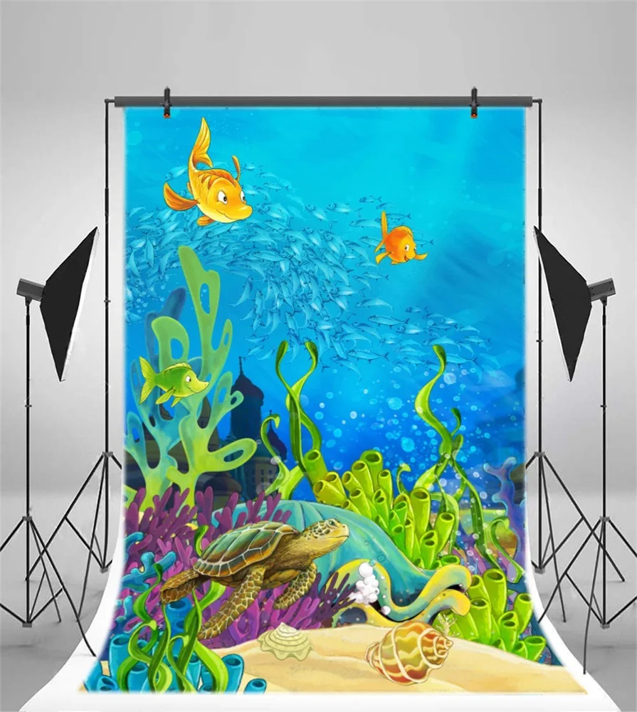 Laeacco Photographic Backgrounds Fish Coral Tortoise Underwater Ocean Wall Paper Photocall Photography Backdrop For Photo Studio